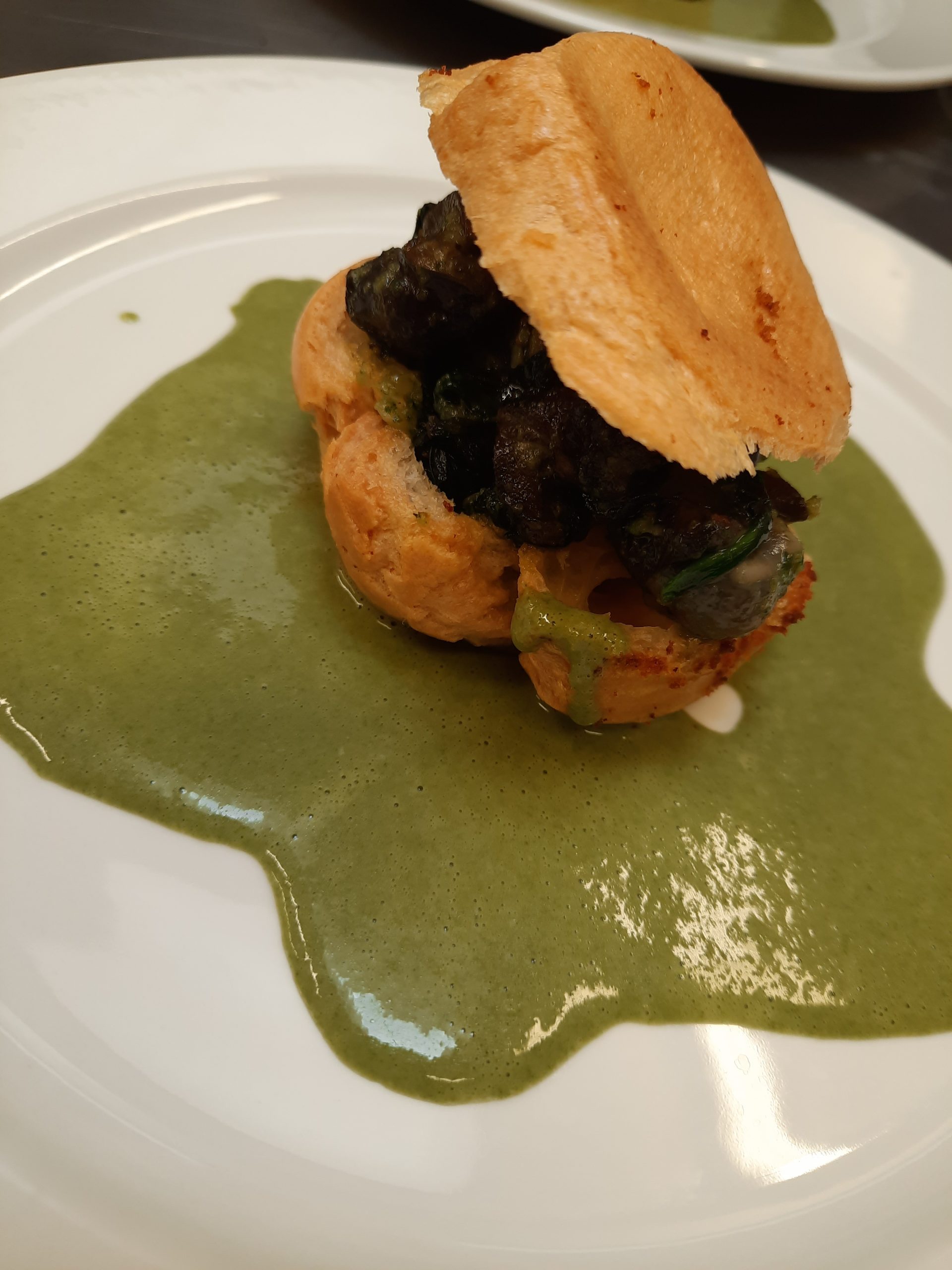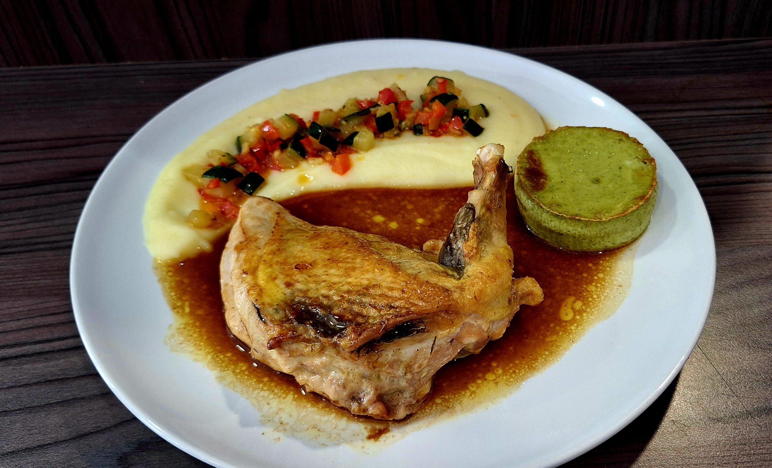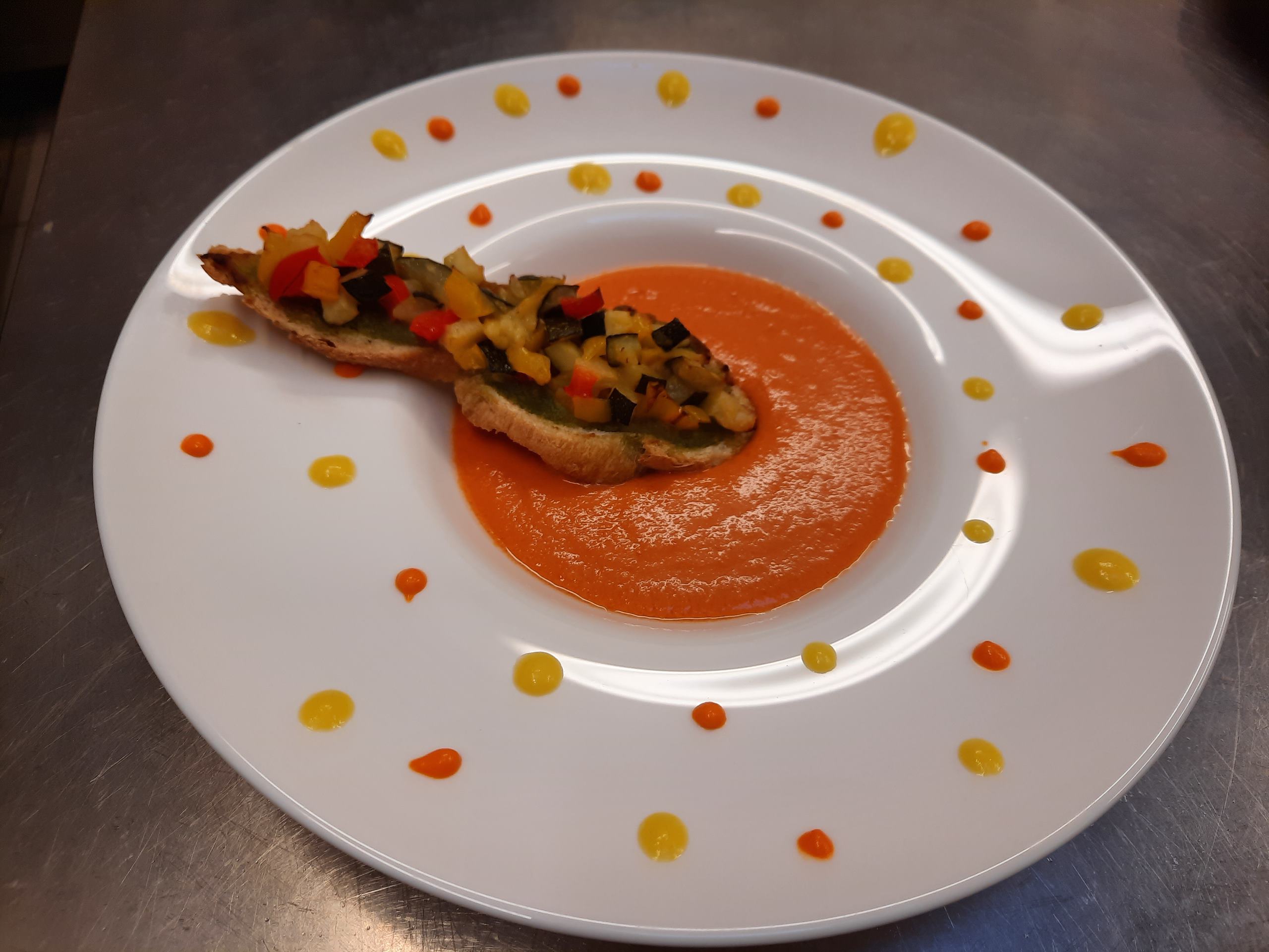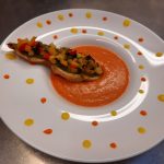 Galerie photos FOIE GRAS MAISON CHOU D’ESCARGOTS SAUCE EPINARD GASPACHO ET SA TARTINE DE LEGUMES SALADE FRAICHEUR CANNELLONI TERRINE DE SANGLIER MAISON POISSON SAUCE HOMARDINE SUPREME DE PINTADE MEDAILLON DE POULET SAUCE ECREVISSE CREME BRULEE ASSIETTE GOURMANDE BRIOCHE PERDUE DESSERT AUTOUR DE LA PECHE PAVLOVA A LA TOMATE PARFAIT GLACE A LA CHARTREUSE FRAMBOISIER