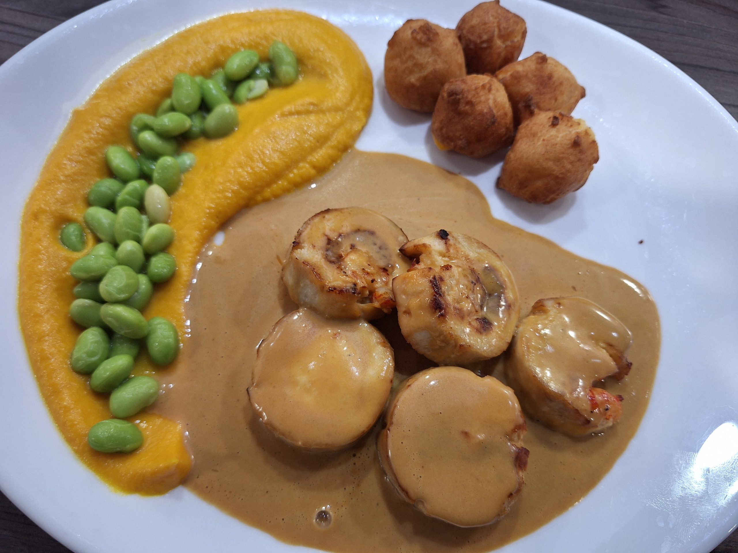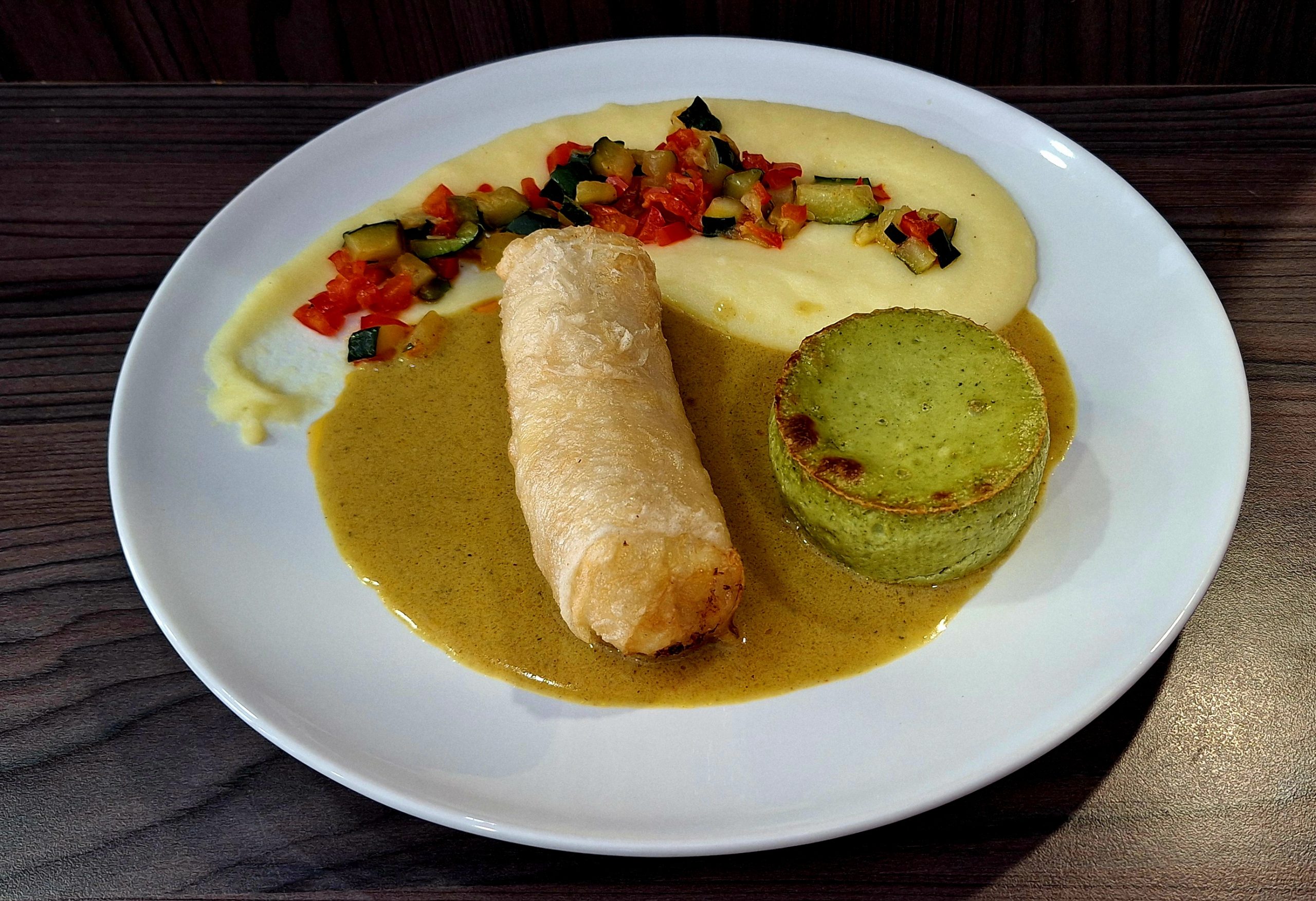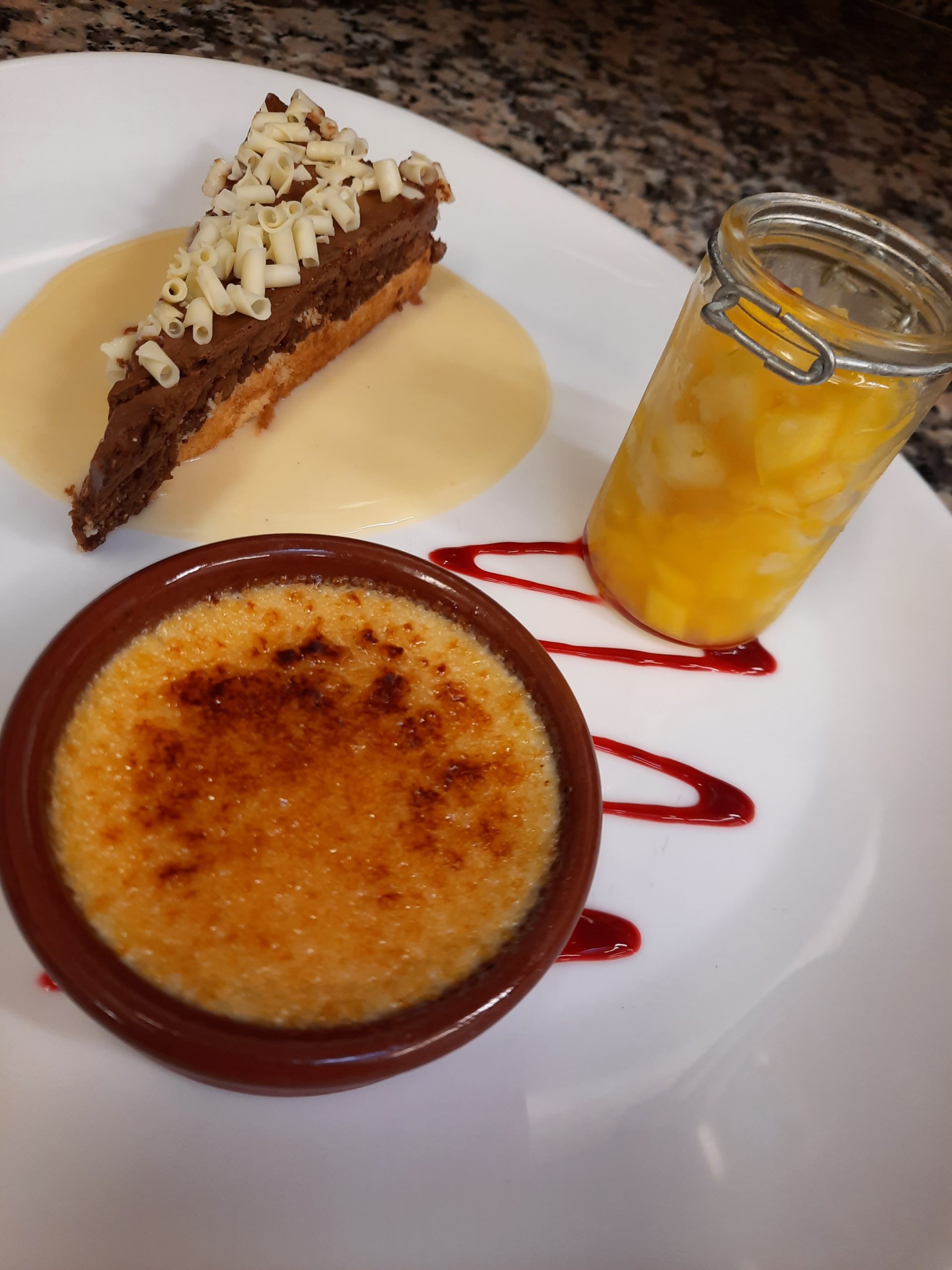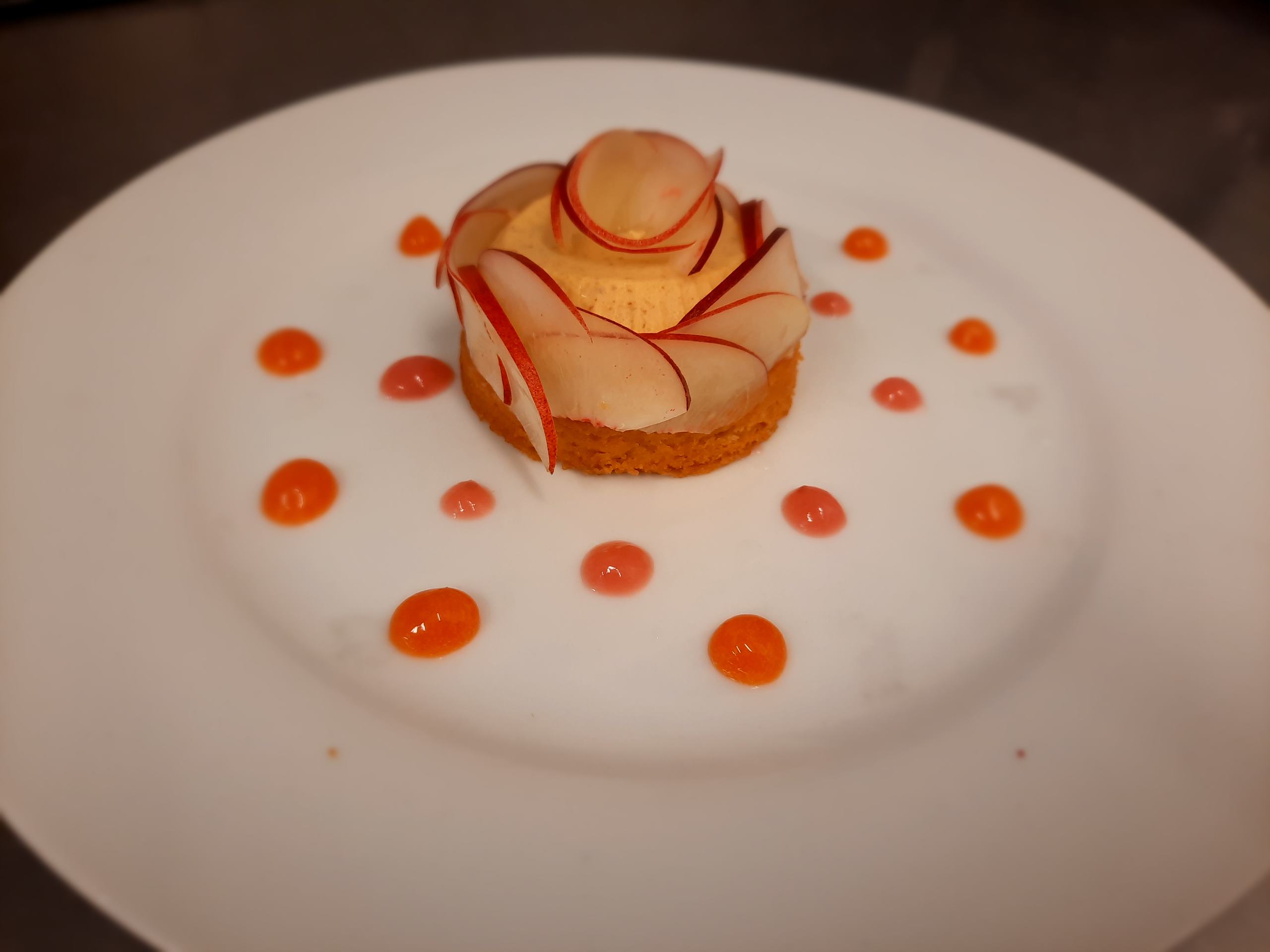 Galerie photos FOIE GRAS MAISON CHOU D’ESCARGOTS SAUCE EPINARD GASPACHO ET SA TARTINE DE LEGUMES SALADE FRAICHEUR CANNELLONI TERRINE DE SANGLIER MAISON POISSON SAUCE HOMARDINE SUPREME DE PINTADE MEDAILLON DE POULET SAUCE ECREVISSE CREME BRULEE ASSIETTE GOURMANDE BRIOCHE PERDUE DESSERT AUTOUR DE LA PECHE PAVLOVA A LA TOMATE PARFAIT GLACE A LA CHARTREUSE FRAMBOISIER